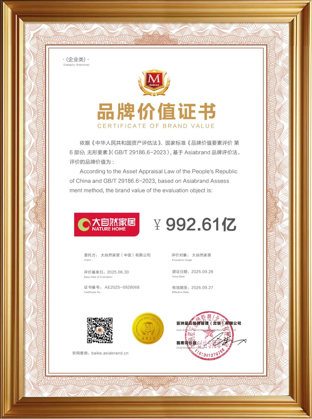 2025年9月27日-28日,由專業(yè)品牌評價機構Asiabrand發(fā)起主辦,中國亞洲經濟發(fā)展協(xié)會、一帶一路總商會、東盟-中國工商總會和亞太第一衛(wèi)視聯(lián)合主辦,被譽為亞洲品牌界年度“奧斯卡”的第20屆亞洲品牌盛典在中國香港舉行。 此次盛典上,大自然家居比肩一眾全球頂尖品牌,再次問鼎“亞洲品牌500強”,獲評“亞洲(行業(yè))十大領軍品牌”和“亞洲(行業(yè))消費者信賴品牌”,品牌價值躍升至992.61億。這是大自然家居自2018年登榜后,蟬聯(lián)上榜的第8年。