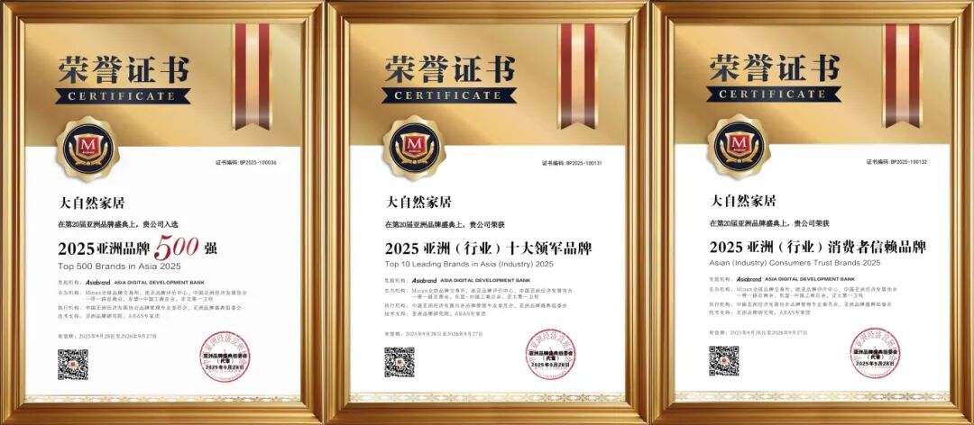 連續(xù)8年蟬聯(lián)“亞洲品牌500強”,是大自然家居堅守長期主義的榮譽注腳。從單一產品到大家居產業(yè)生態(tài)的構建,不僅是產業(yè)格局的升華,亦是源于三十年來對產品、技術與責任的靜水深流,更是市場與消費者信賴的雙重回響。征程未盡,步履不停。未來,大自然家居將繼續(xù)以健康家居為基石,擔當生活方式的倡導者與綠色未來的建設者,以產品力、布局力與責任力,持續(xù)賦能美好人居,穿越周期,與行業(yè)共進、與時代同行。