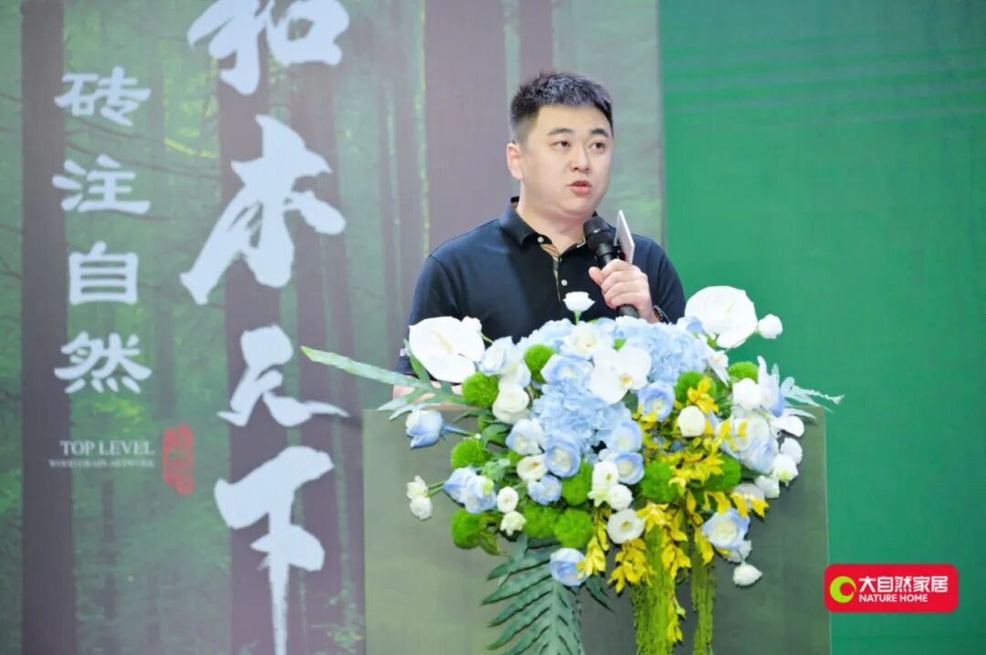 在運(yùn)營中心揭幕之后,活動移師主會場,進(jìn)入更為核心的戰(zhàn)略發(fā)布與新品揭曉環(huán)節(jié)。星系家居董事長、大自然木紋磚運(yùn)營中心總經(jīng)理王簪澤先生在致辭中,首先對到場嘉賓表達(dá)了誠摯感謝。他闡述了大自然木紋磚未來發(fā)展的“三步走”戰(zhàn)略,并將始終以長期主義為指引,以產(chǎn)品力與伙伴關(guān)系為核心依托。其發(fā)言既體現(xiàn)了對產(chǎn)品品質(zhì)的堅(jiān)守,也展現(xiàn)了品牌深耕細(xì)分領(lǐng)域的戰(zhàn)略定力。